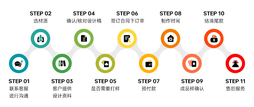 雙方簽訂供需合同,然后預(yù)付訂金;我公司在確認(rèn)收到訂金后,由我公司設(shè)計(jì)師根據(jù)需方的要求進(jìn)行設(shè)計(jì)制作,三天內(nèi)設(shè)計(jì)樣稿免費(fèi)回寄或網(wǎng)上傳回樣稿給需方進(jìn)行修訂至較后確認(rèn)。以較后確認(rèn)的樣稿進(jìn)行生產(chǎn),生產(chǎn)完成后由需方進(jìn)行驗(yàn)收(可來人驗(yàn)貨,或我公司發(fā)樣品到需方驗(yàn)貨)。剩余貨款在驗(yàn)收后發(fā)貨前付清。